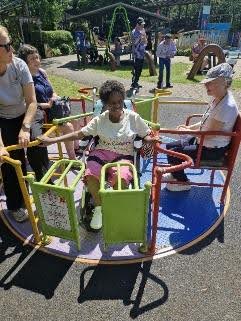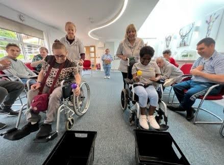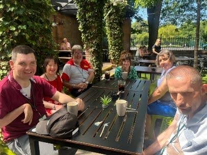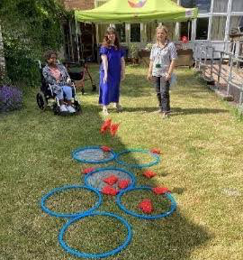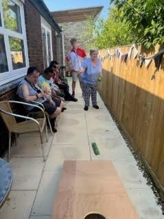 The recent warm weather has enabled staff to organise plenty of outside activities and a few trips which have been very much enjoyed by the younger clients. A small group had a trip to Windsor to watch the changing of the guards and had a picnic afterwards by the river in the shade. They also had a trip to the Thames Valley Adventure Playground which offers a unique range of adventurous, therapeutic and educational play activities in a safe, caring and stimulating environment for people with all types of disability. Some clients also visited the Connexions Café in Wades Field and the Dementia café at Speen. There have been outdoor games and the new paved area outside the lower hall is now able to be used and clients were able to enjoy sitting outside.
