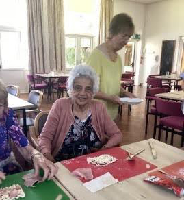Indoors there are plenty of different activities for our clients. There have been jewellery making sessions, plenty of opportunity to make cakes, pizzas etc, pottery, computer work, sing-a-long sessions, dancing, cardio-drumming, bingo sessions, dominoes, and much more, as well as another entertaining session from the Black Dog Band.