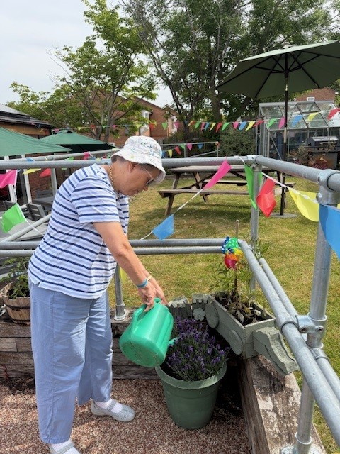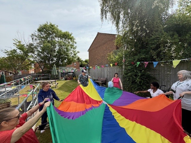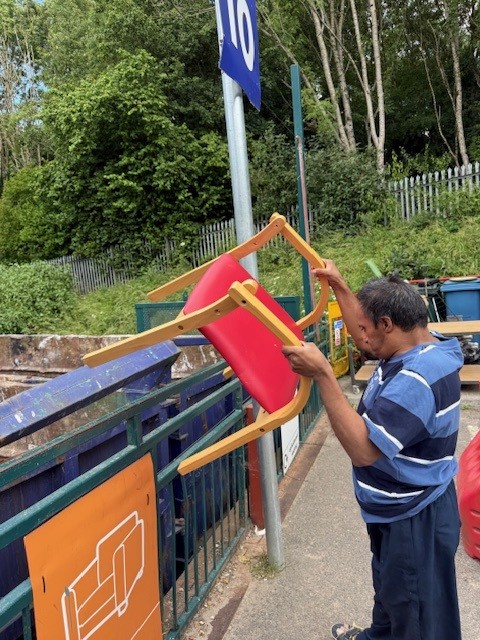 The arrival of summer has enabled our clients to enjoy more activities outside and staff have been careful to ensure that they are well hydrated and protected from the sun and extreme heat that has occurred on several days. The garden has been well used with some clients attending to the plants and others enjoying games there. The parachute game is very popular. Some clients have been out to the Connexions Cafe, or to look around Thame market and enjoy a lunch out. Some of the men enjoyed helping to take a number of old chairs to the local recycling centre.