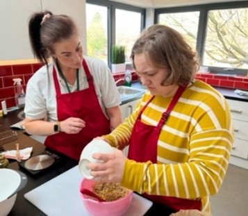 In the cooking sessions, clients have been making quiches and flapjacks to name a few. Some like to play scrabble, Rummikub or dominoes. Pottery is always a favourite and there is plenty of craft work making Easter bonnets, photo frames, Easter decorations, painting, knitting, having a go at jigsaw puzzles etc with a drink of sherry thrown in at times. At other times the clients enjoy listening to music and one of our clients gave a performance on the piano one afternoon. For clients who are housebound or live in remote areas where they have little contact with other people, the Princes Centre is a great place to socialise and make friends with others. We serve wonderful meals too.
