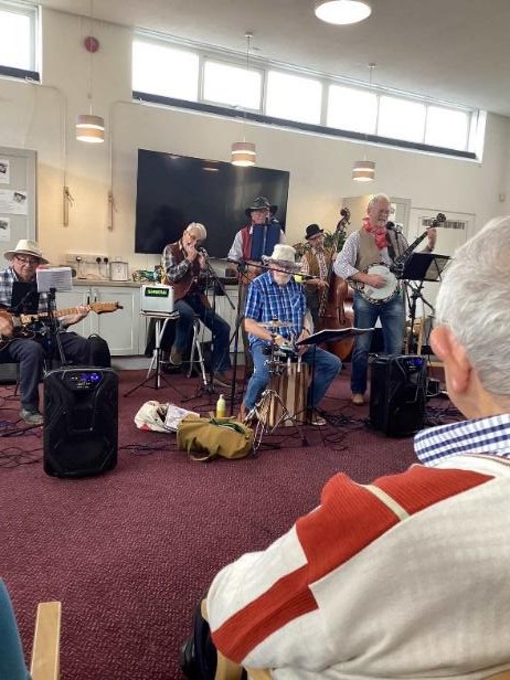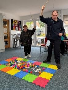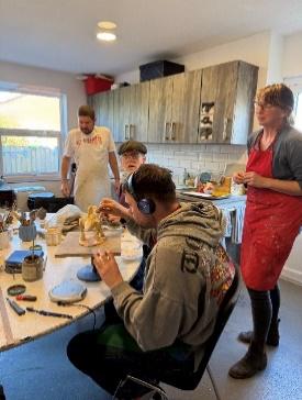 There has been plenty going on indoors at the Centre too. Clients have enjoyed making Halloween decorations and the younger ones enjoyed a Halloween party. The cooking sessions have resulted in delicious chicken casseroles and vegetables, pizzas, and cakes which the clients take home and enjoy. Some like to do art and one client had her work displayed in the Wades ‘Art in the Park’ this year. Pottery is a firm favourite with some wonderful work produced. Cardio drumming, hoop games, carpet bowls and other physical games take place alongside the more relaxing quizzes, table games and bingo. The popular Hillbillies and the Black Dog Band came and entertained.