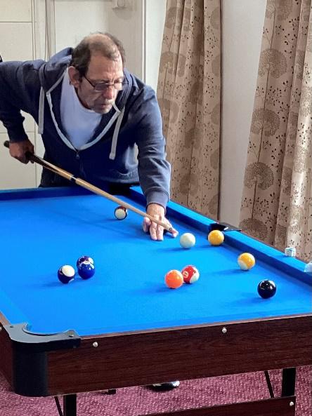 We are very grateful to the resident who recently donated a billiard table for the clients to use. They are very much enjoying it. Others have enjoyed playing ‘Bubble tennis’, painting tiles, flower arranging with flowers donated by Marks and Spencer, art classes and making autumn wreaths, apart for the usual activities.