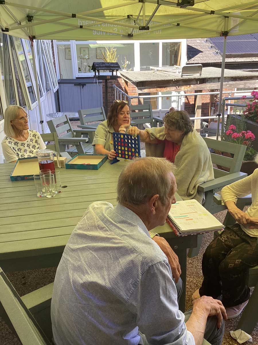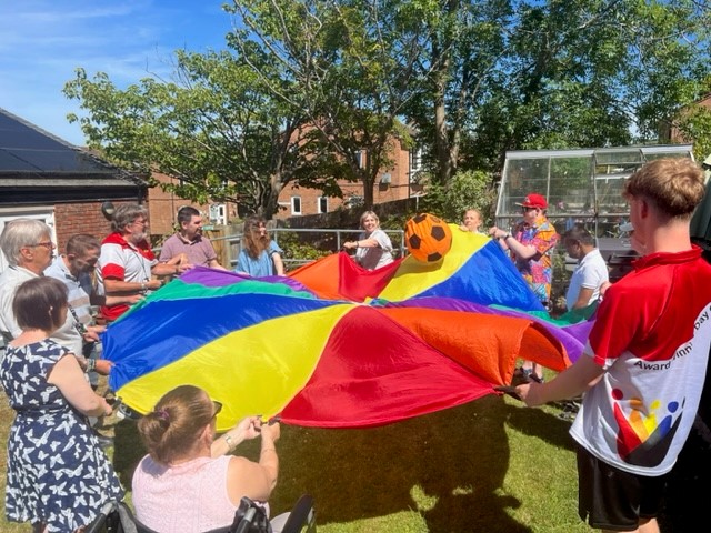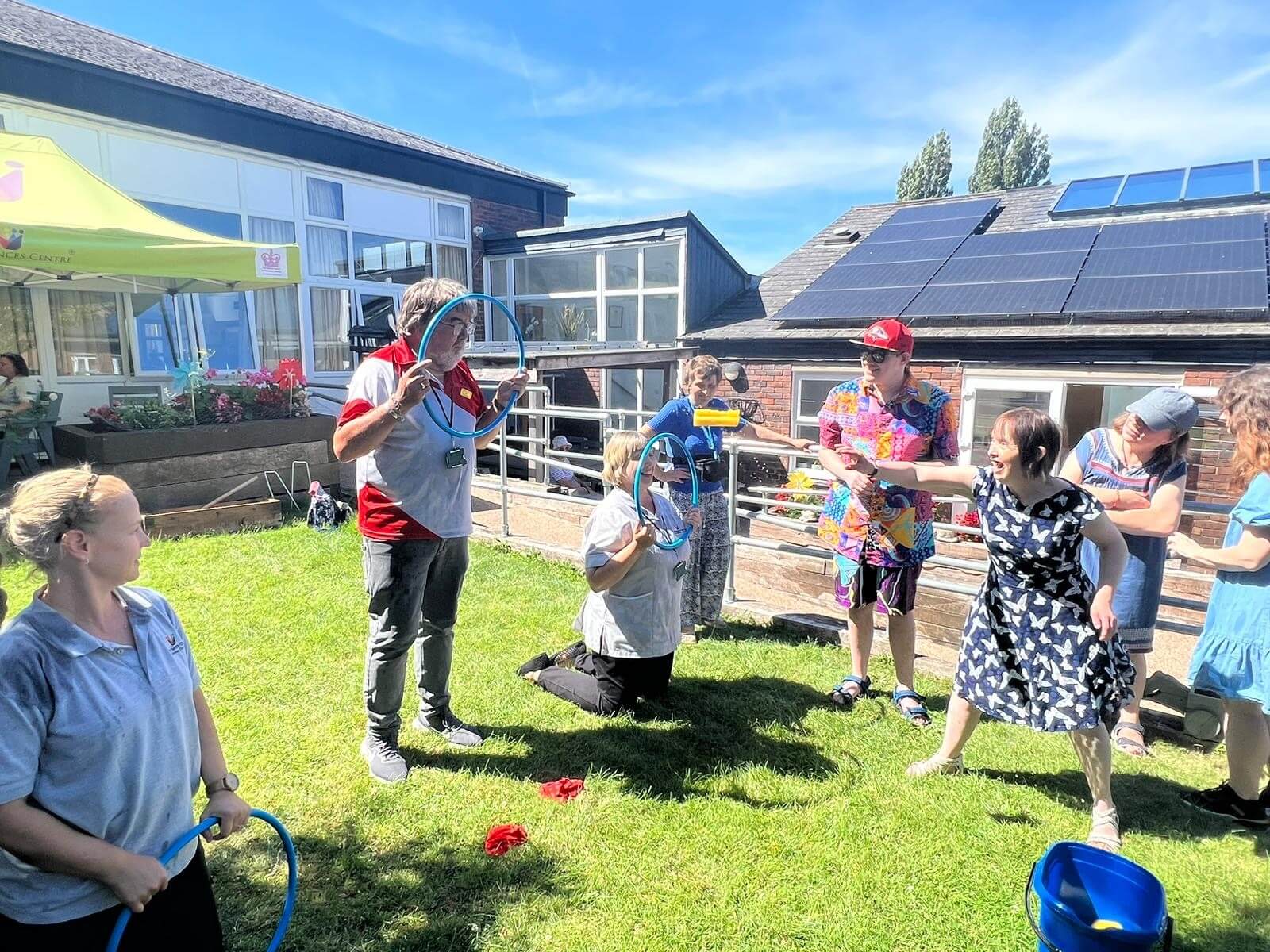 Others have had fun in the garden with various outdoor games which included soaking the poor staff with a sponge game and the parachute game. Indoors there have been cooking activities, cardio drumming, playing on the Tiny Tablet computer table, board games, dominos, singing, dancing, jigsaws, artwork and manicuring sessions etc. The younger clients recently completed a virtual 2 million metre challenge to walk from here to Italy which was a wonderful achievement exercise-wise. They were all presented with a special certificate and treated to a disco afterwards.